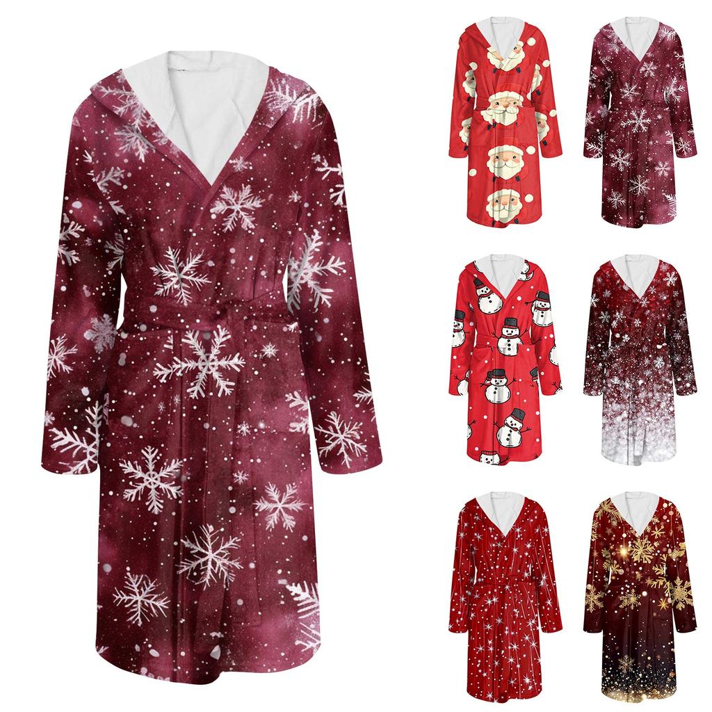 Bathrobe For Men And Women Christmas Printed Flannel Bathrobe Absorbent Quick-drying Cotton Nightgown