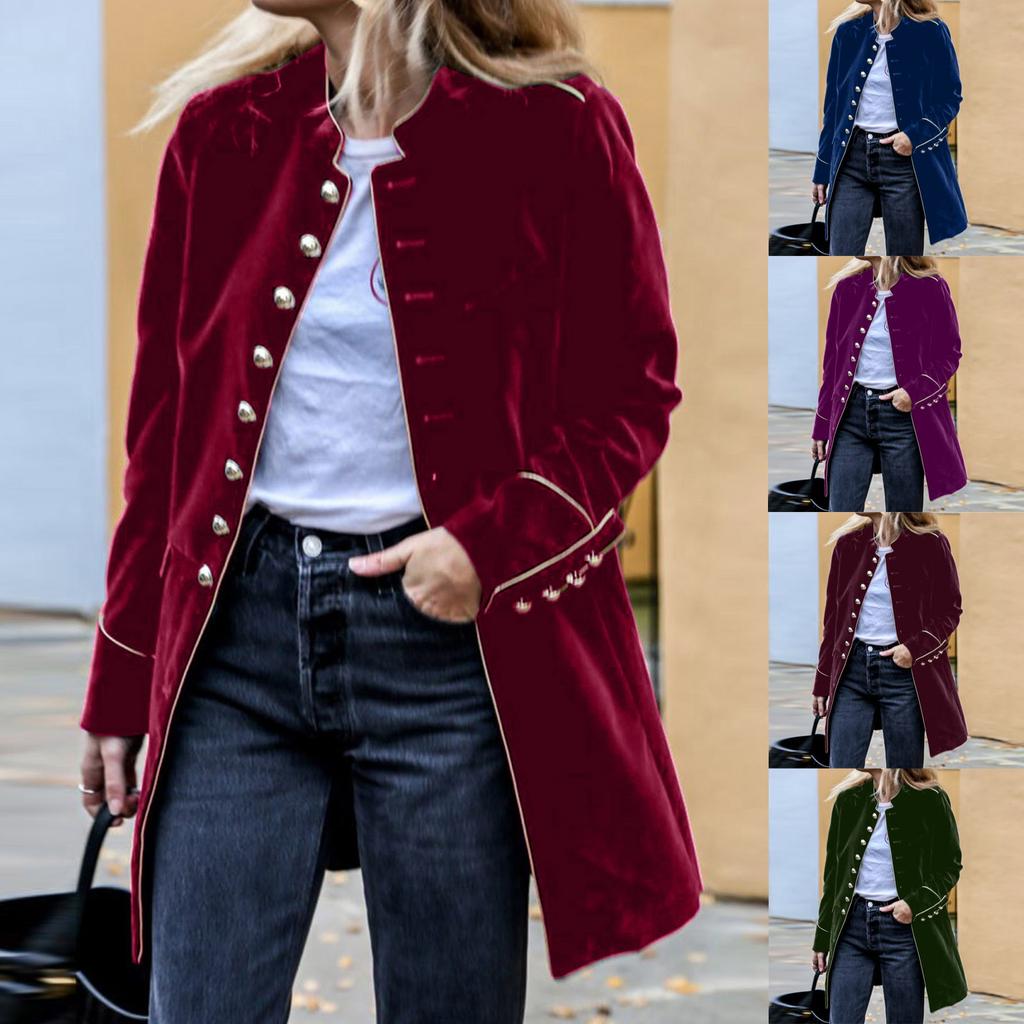 Women's Long Sleeve Warm Velvet Patchwork Button Coat Winter Warm Coat Top