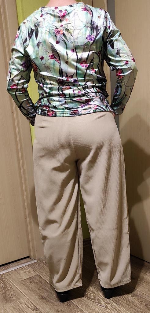 Women's Off-White Corduroy & Velvet High-Waist Pants - Autumn/Winter Casual Chenille Wide-Leg Style