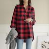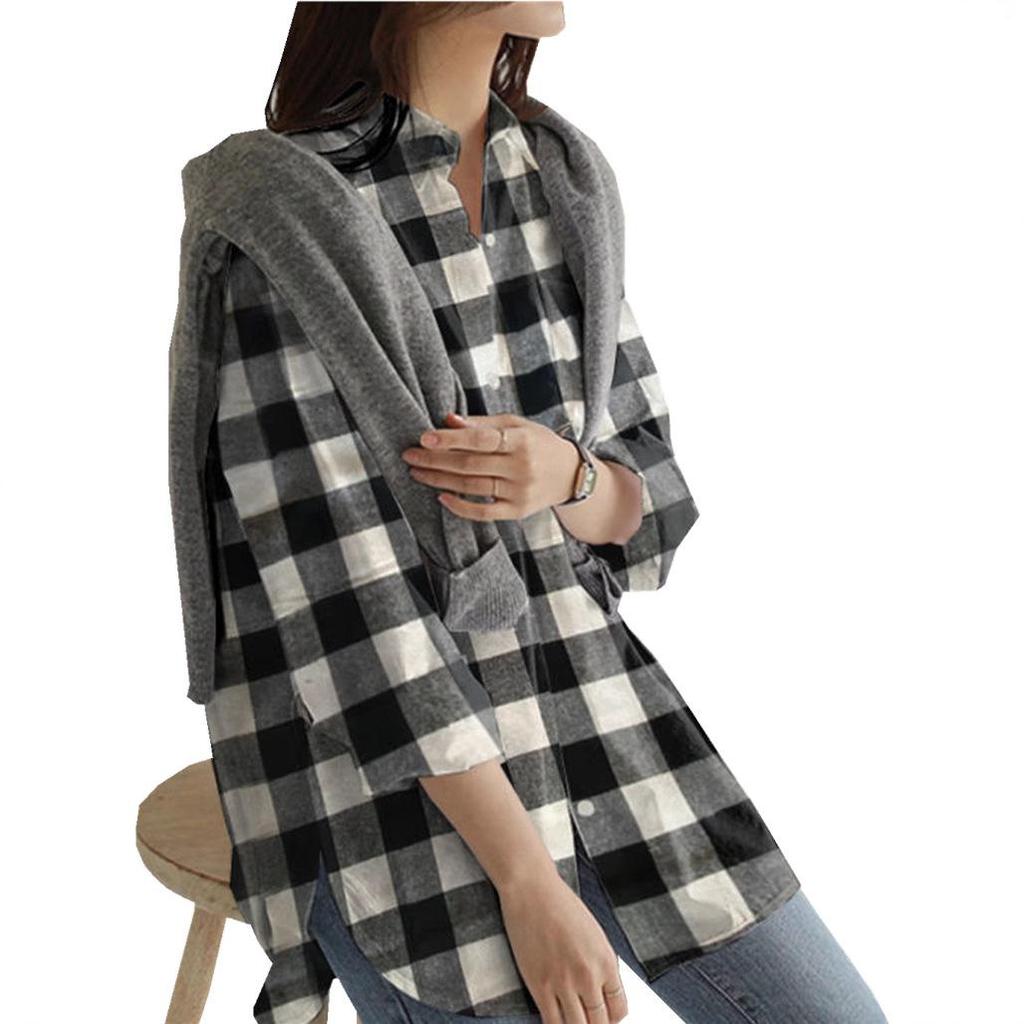 Elevate your wardrobe with this chic women's plaid fashion shirt. Designed with a mid-length cut, it features long sleeves and a stylish lapel collar, providing a relaxed and fashionable look. Crafted from high-quality polyester, this shirt offers a comfortable and loose fit, perfect for layering or wearing on its own. The eye-catching plaid pattern adds a touch of classic style, while the printed design enhances its modern appeal. Ideal for both casual and semi-formal occasions, this versatile shirt is a must-have addition to any fashion-forward collection.