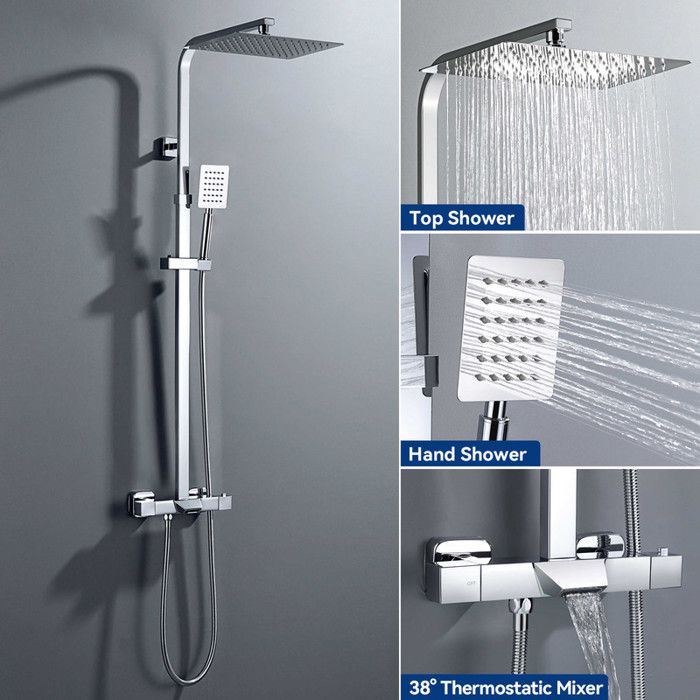 Colonne de douche - Mitigeur thermostatique - Pomme haute 30x20 cm - Chrome - Baignoire/Salle de bain