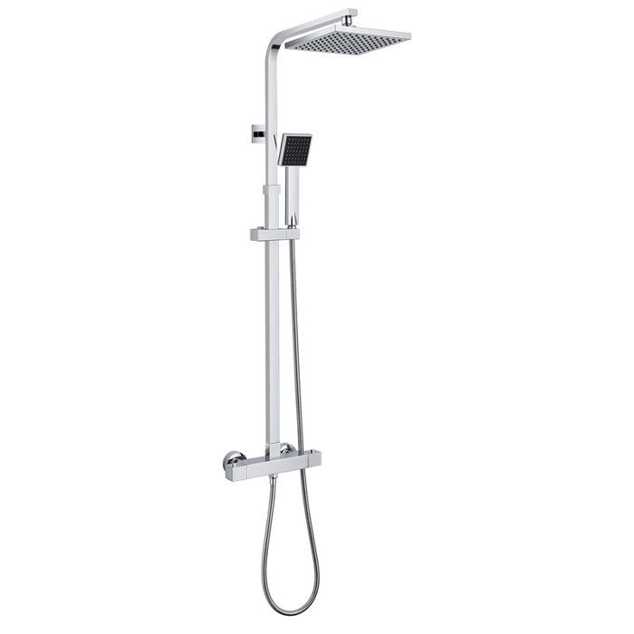 Shower Column - Auralum - Thermostatic Mixer - Square 20 Cm Overhead Shower - Chrome - Adjustable Height