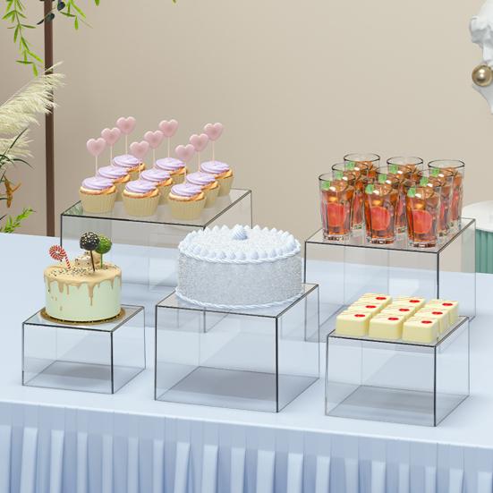 Introducing the versatile display box, a must-have for various occasions. This self-service elevator serves multiple purposes such as cake stands, jewelry displays, catering showcases, and more. The acrylic cube boxes come in different sizes, adding an organized touch to any buffet or dessert table setup.