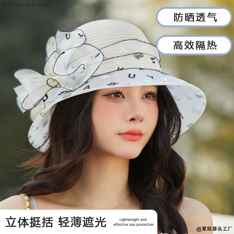 Hat Women's Organza Sunshade Sunscreen Hat Temperament Elegant Big Brim Bucket Hat UV Protection