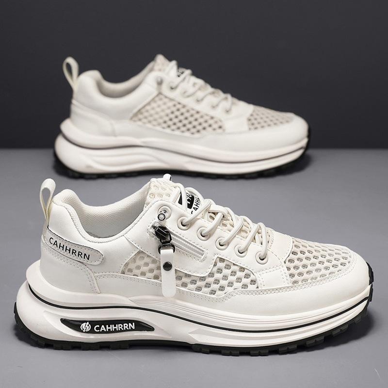 Large Hole Mesh Men's Shoes Summer Breathable Sports Shoes Men's Thick-soled Trendy Shoes Student White Shoes
