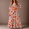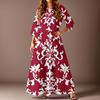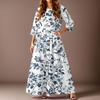 Women's Casual Fashion Floral Print Three-quarter Sleeve Long Dress With Pockets