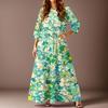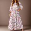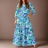 Women's Casual Fashion Floral Print Three-quarter Sleeve Long Dress With Pockets