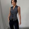 Summer Temperament Striped Sleeveless Shirts Slim Fit Cardigan Women’s Blouses & Shirts