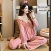 2024 Autumn/Winter Women's Gold Velvet Pajama Set: Long Sleeve & Pants, Palace Princess Style, Indoor/Outdoor Wear