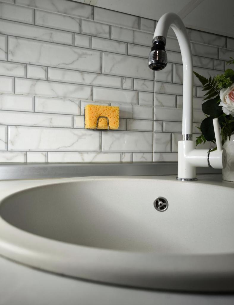 Sponge holder for sink. Holder material: stainless steel, not afraid of moisture. Dimensions: 4.9*4.9cm. The holder is easy to install, does not require drilling, but is simply attached with strong double-sided tape (included), and holds well in the sink. The self-adhesive holder can be used not only for the sink, but also for other kitchen utensils (boards, washcloths, etc.). I ordered it specifically for the sink. I've already attached it, it holds tightly, now the dishwashing sponge is always in its place.