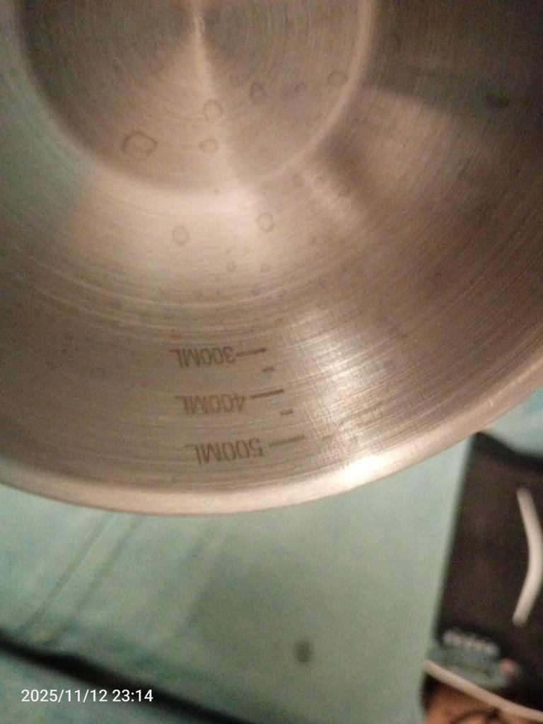 Ordered 0.5l volume. The volume does not correspond, although there are measuring lines inside... And not one corresponds to the indicated measurement.. Well, you can see right away, the ladle is small... I supplement the review... after 2 uses such spots appeared.. Rust.. Stainless steel shouldn't rust.. last photo..