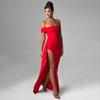 European and American Summer Strapless Sexy One Neck Backless Slit Long Dress