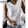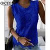 QICED Women's Fashion Casual Solid Color Print Sleeveless O Neck Blouses & Shirts