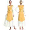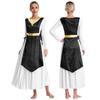 Womens Church Worship Robe Choir Performance Tunic Metallic Patchwork Lace-Up Sides Split Satin Dress Dancewear