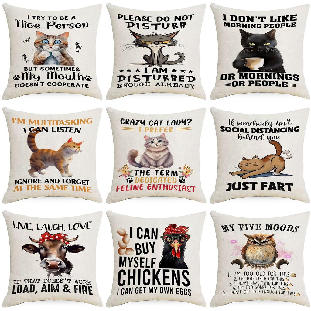 Funny Cat Animal Linen Printed Pillowcase Home Sofa Cushion Pillowcase Decoration