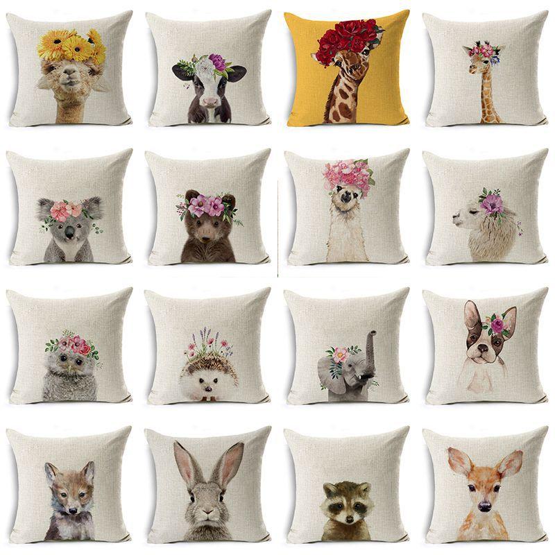 New Cute Little Animal Linen Pillowcase Home Sofa Pillowcase