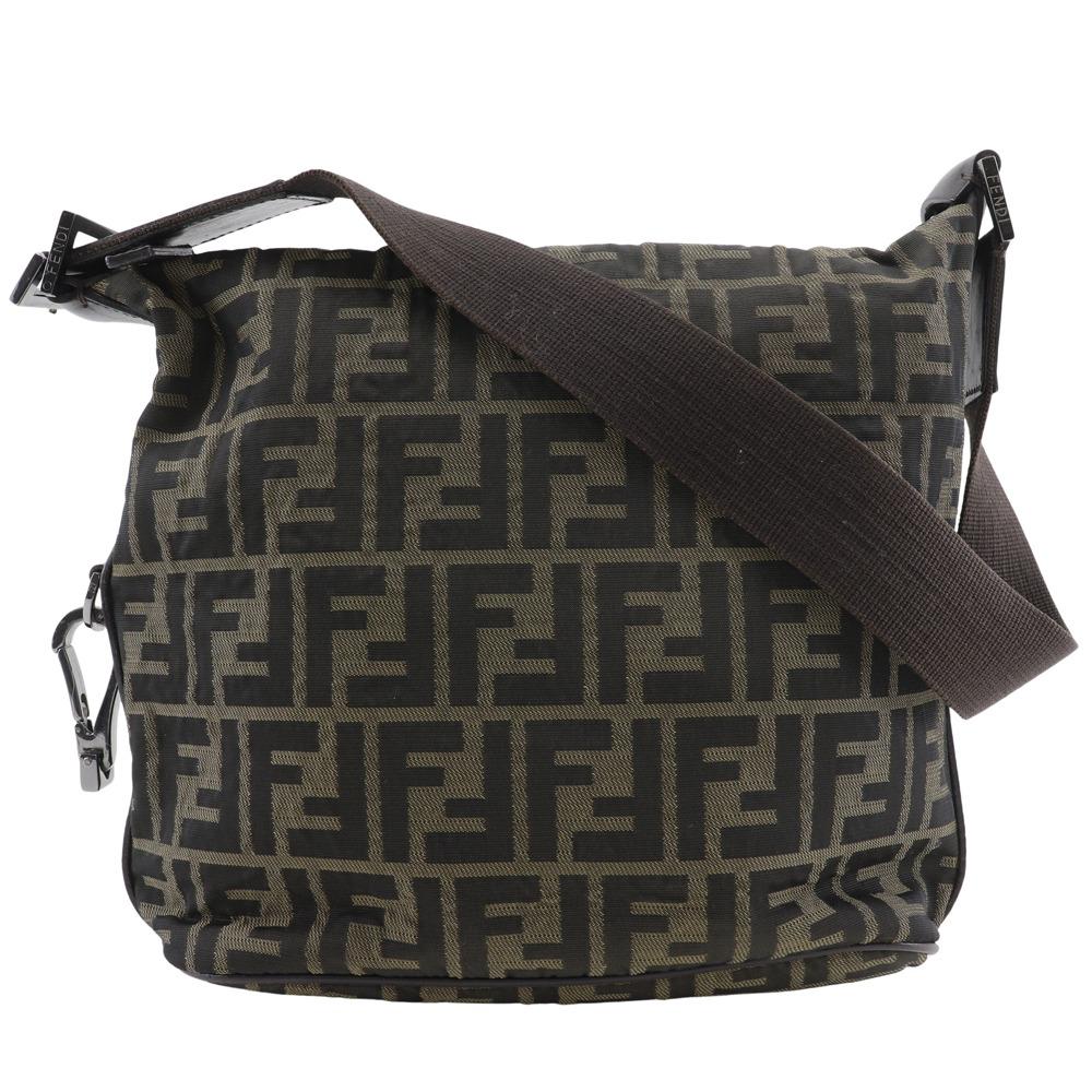 Fendi Zucca Shoulder Bag One Belt Brown Nylon Canvas Women Used