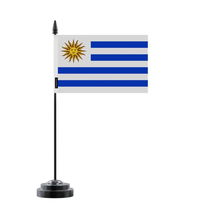 Uruguay Table Flag – 14 X 21 Cm – Polyester – Black Plastic Base – Pixelforma
