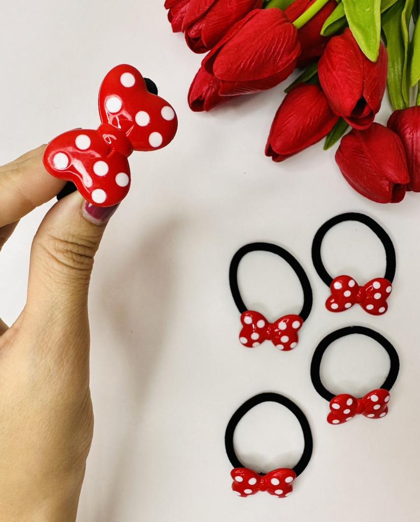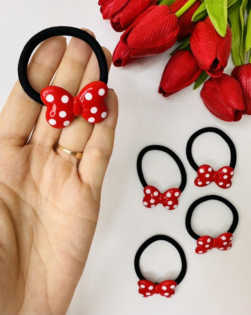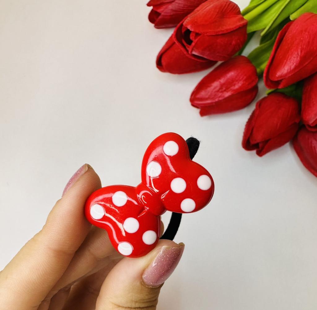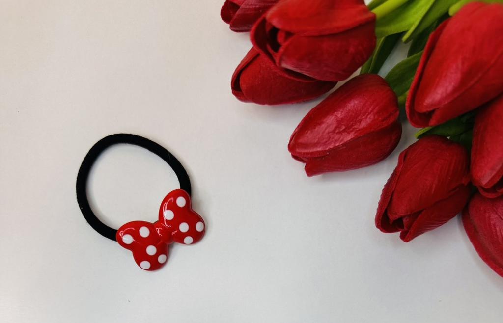 Hair tie with a red bow with white polka dots The elastic is comfortable to use, holds hair well, prevents damage.. Such an accessory is suitable for all hair types.