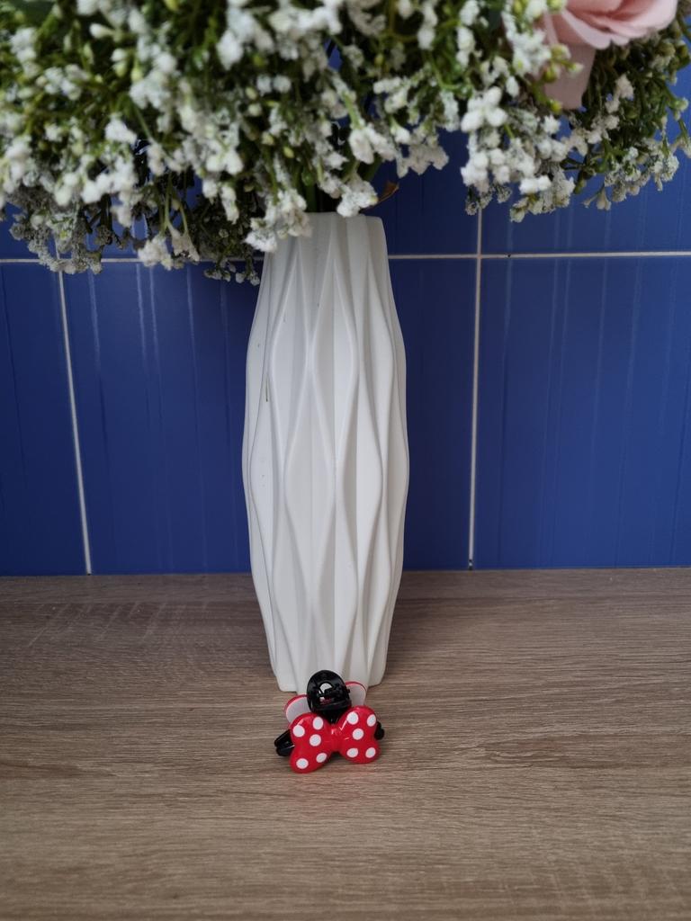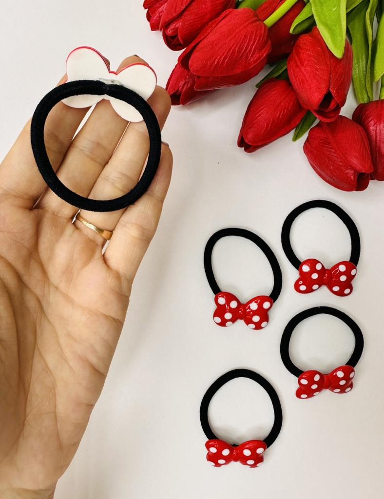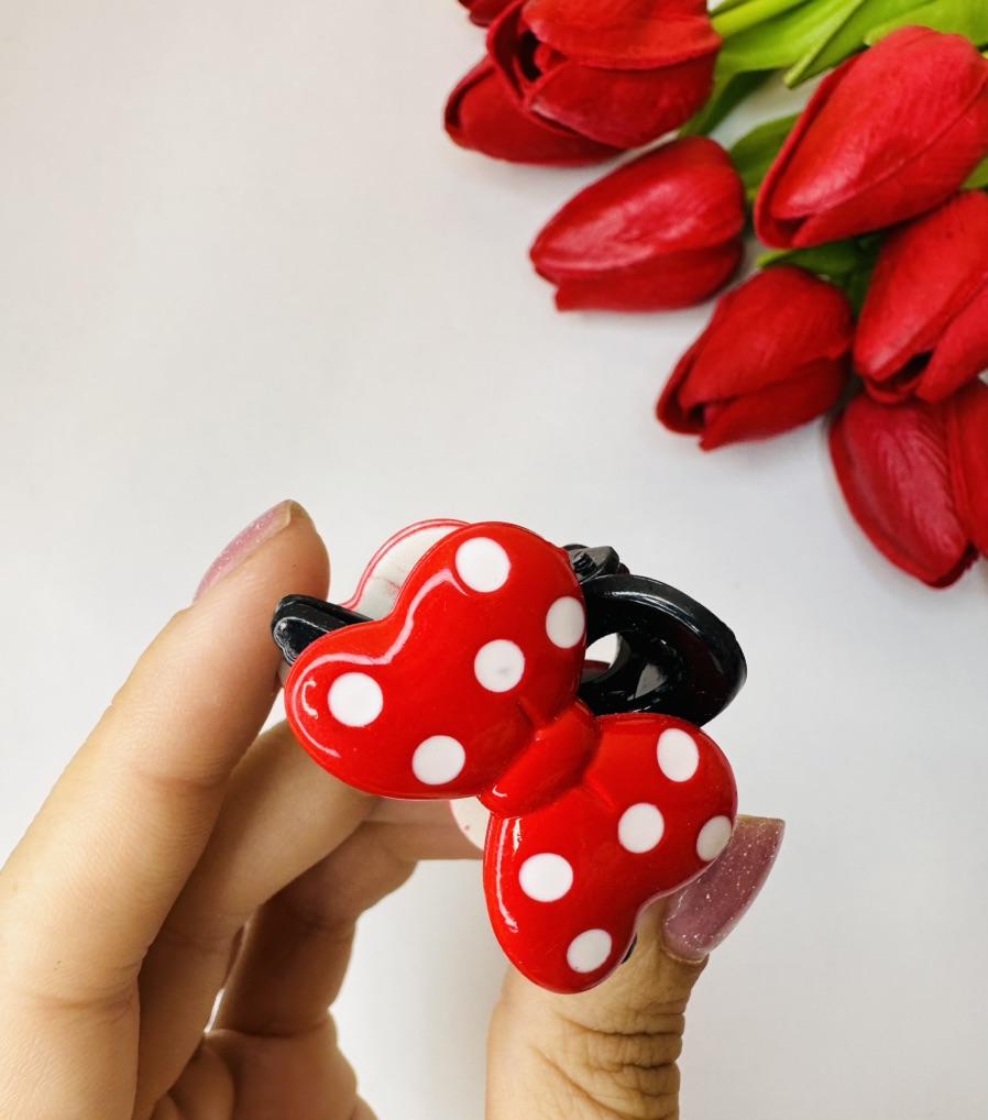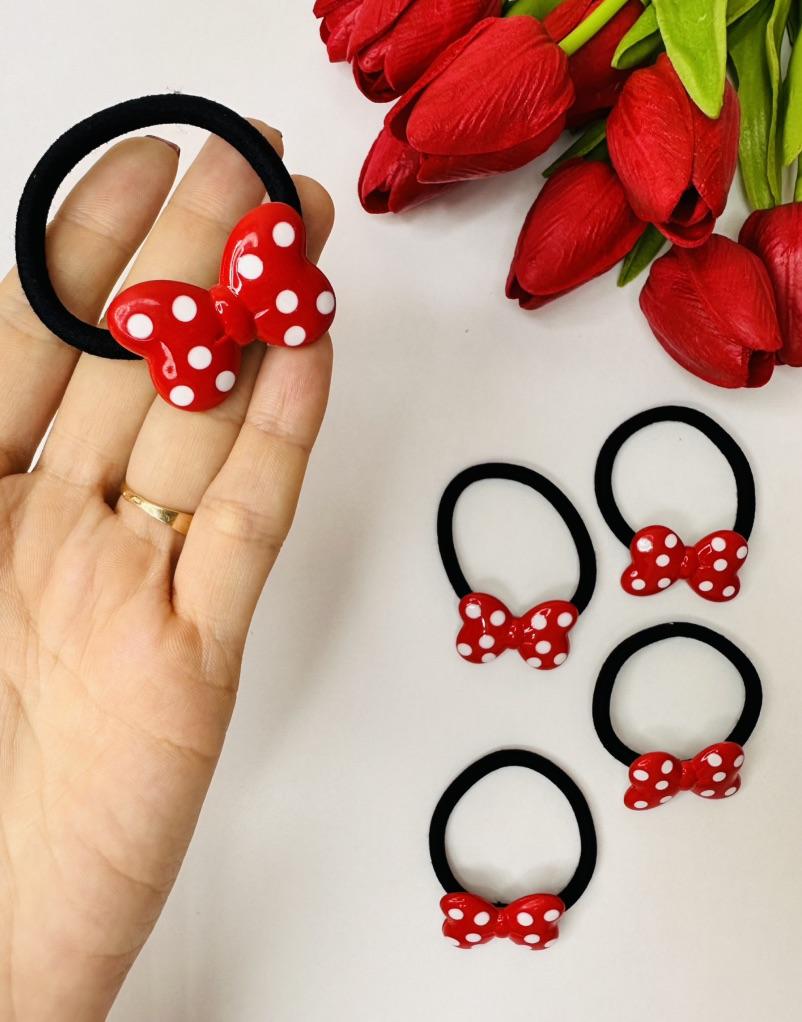 Hair tie with a red bow with white polka dots The elastic is comfortable to use, holds hair well, prevents damage.. Such an accessory is suitable for all hair types.