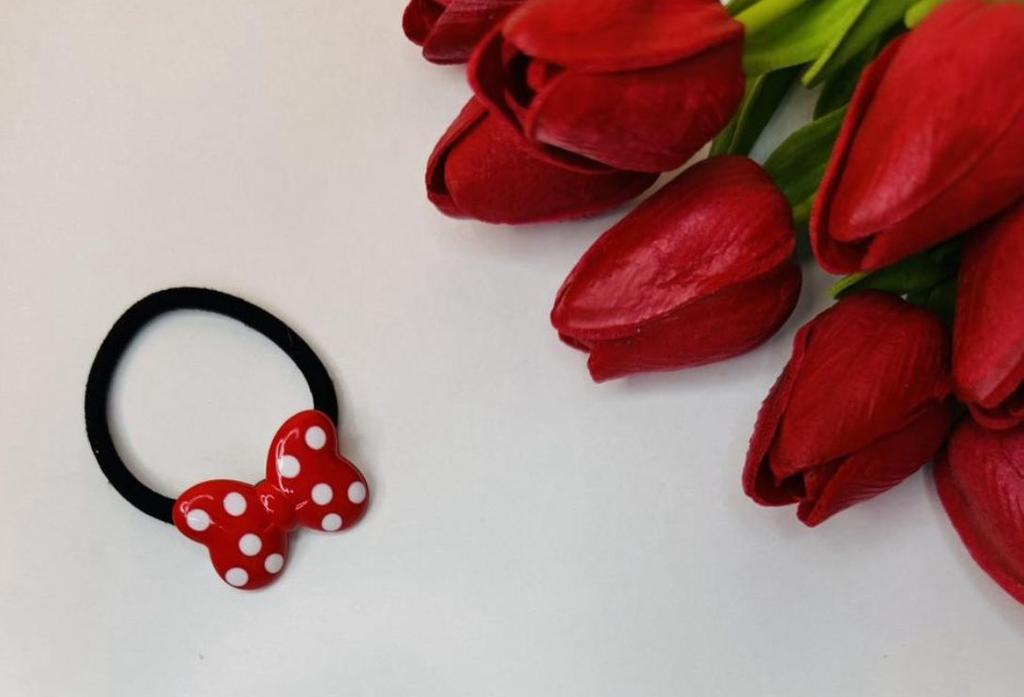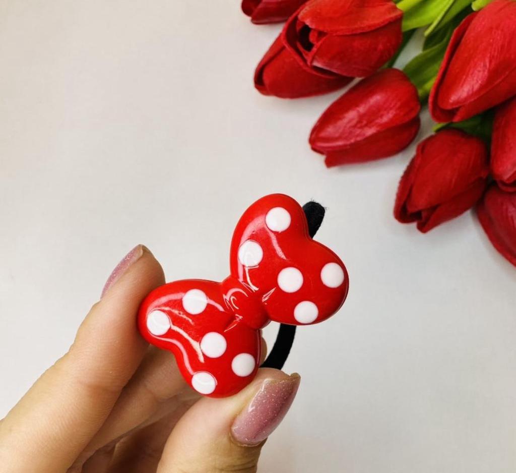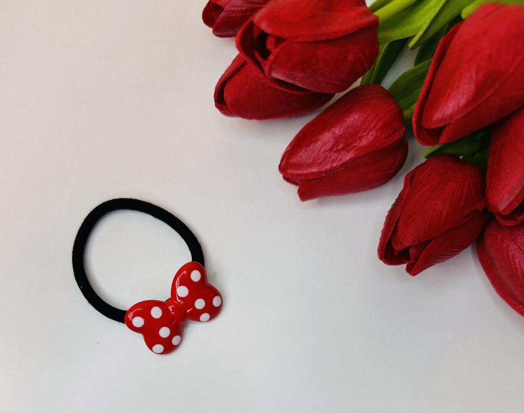 ❤️👍Hair tie with a red polka dot bow The elastic is comfortable to use, holds hair well, prevents damage.. Such an accessory is suitable for all hair types.