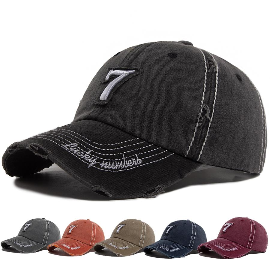 Men‘s Baseball Cap White Line 7 Embroidered Patch Women Hat Summer Vintage Break Hole Visor Casual Caps Fashion Hats For Unisex