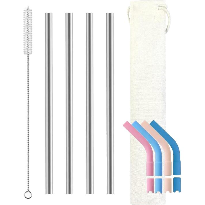 Pure Titanium Reusable Straws with Silicone Tips,Travel Case & Cleaning Brush,BPA Free & Eco Friendly,Dishwasher Safe,Fits 20-30oz Tumblers (Titanium