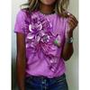 Summer Round Neck Solid Color Short Sleeved Top 3D Flower Pattern Printed Women's T-shirts