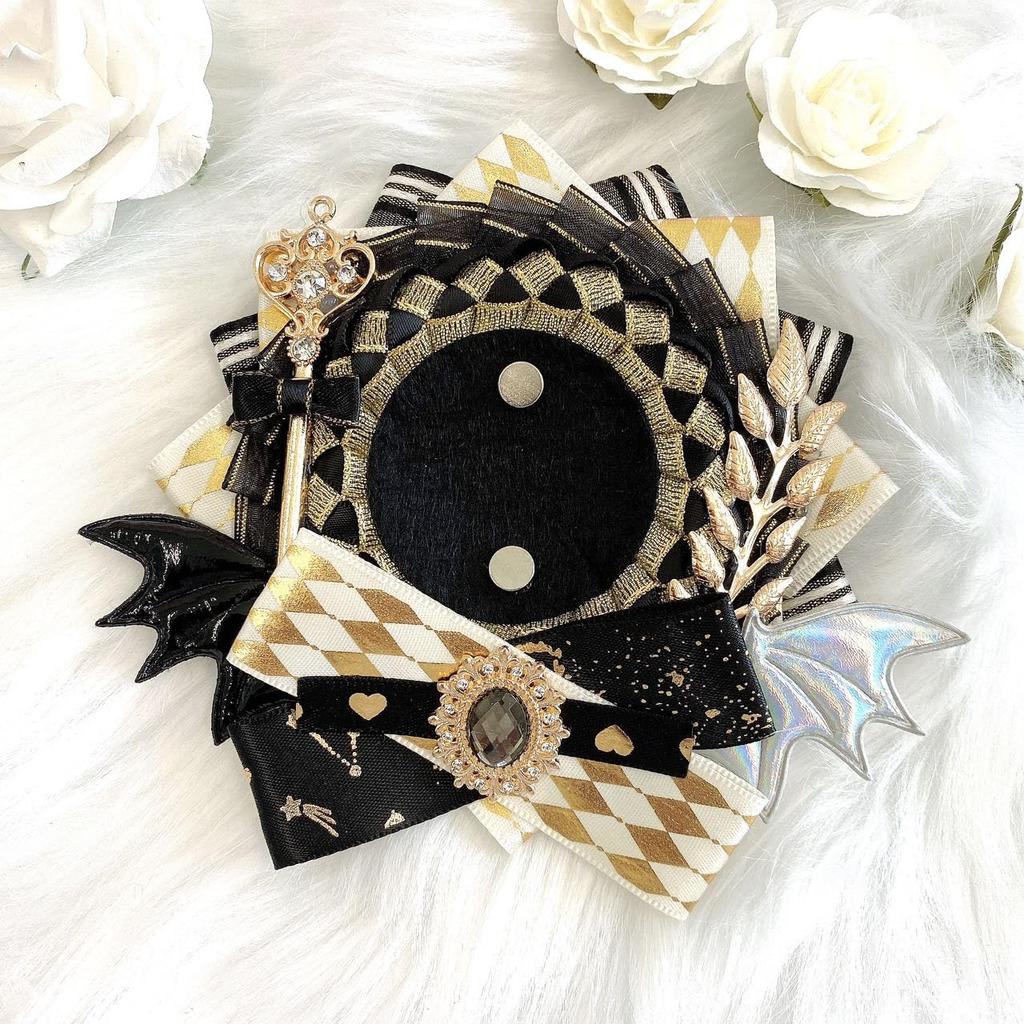 G Triger Ita Rosette for Can Winged Ita Bag Handmade Black Badges, Rosette, Devil, 57mm, 58mm, Decoration, Rosette, Ribbon,
