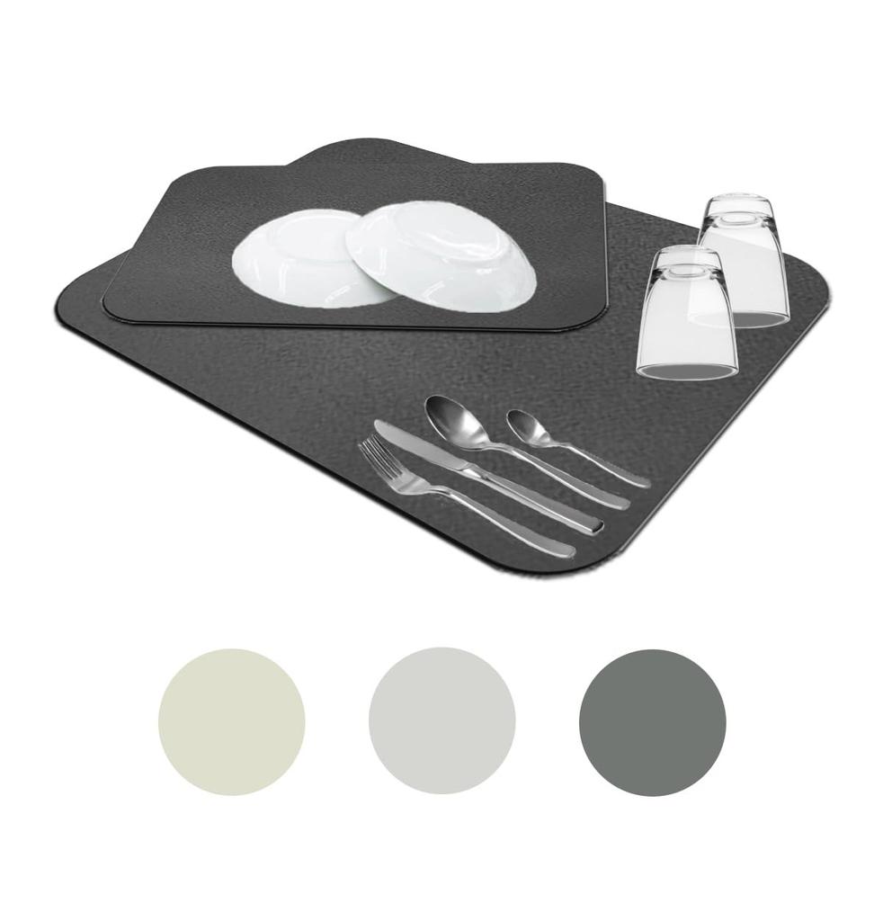 Draining Diatomaceous Silver Made In Tableware of Dark Mat, Earth, Ions, Japan, Kitchen, (set 2, Gray)