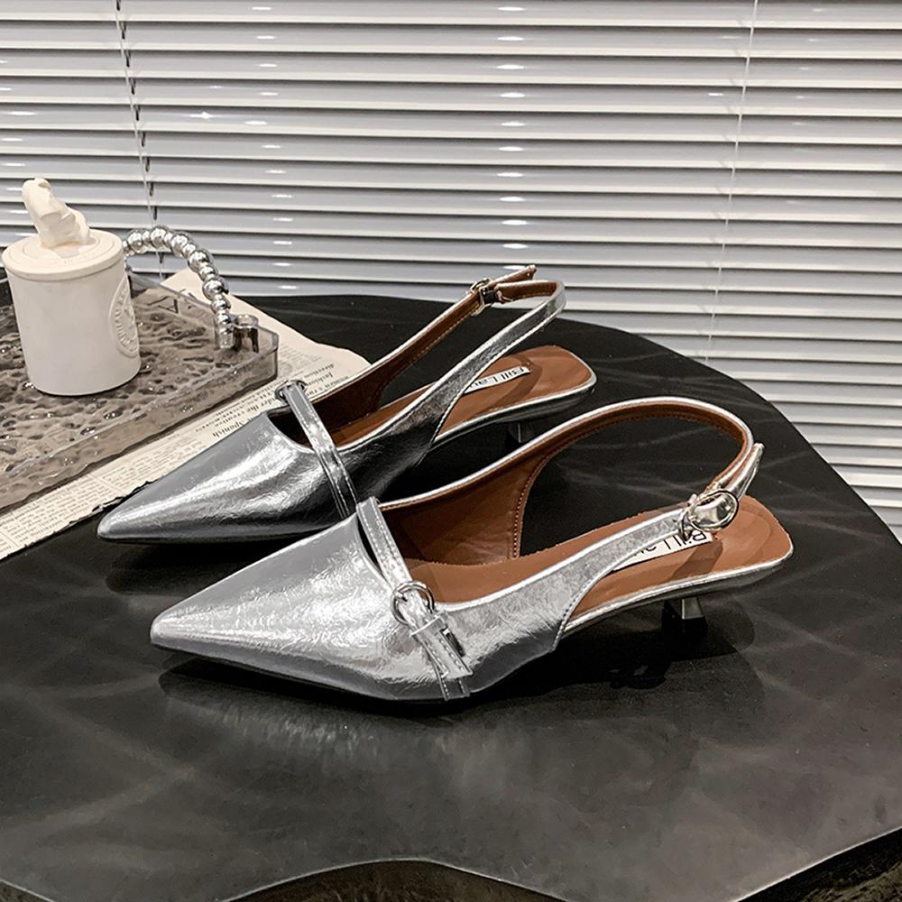2025 Woman Sexy High Heels Women Sandals Summer Fashion Pointed Toe Low-heel Pumps Slingbacks Elegant Female Heeled Shoes