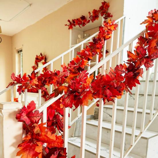 Lifelike Appearance: Crafted from high-quality faux silk material, this Artificial Garland features realistic maple leaf design, adding a touch of nature to any space.