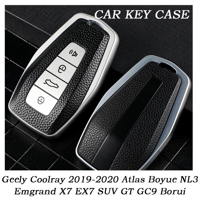 Leather TPU Shell Fob For Geely Coolray 2019-2020 Atlas Boyue NL3 Emgrand X7 EX7 SUV GT GC9 Borui Car Remote Key Case Cover