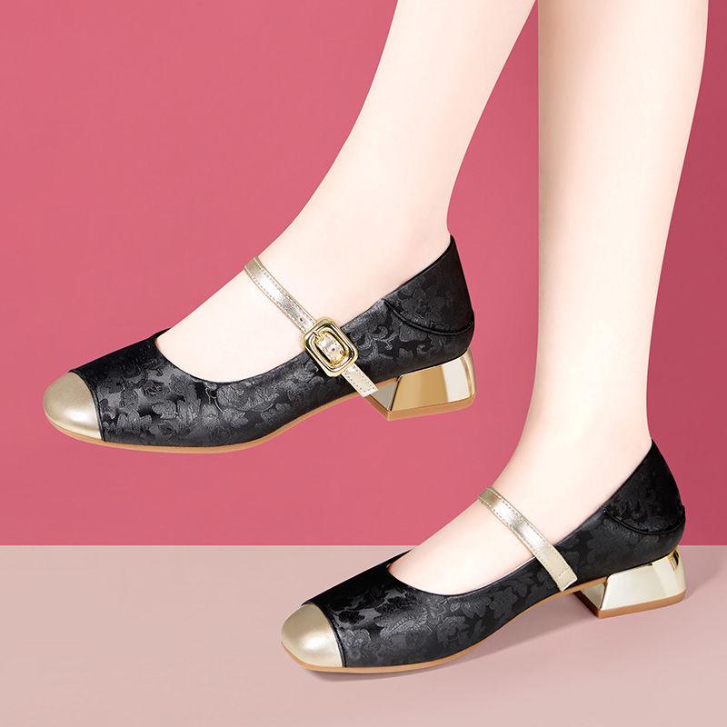 2.5cm 4cm Breathable Comfortable Shallow Mouth Floral National Flat Platform Shoes 2025 Spring Soft Leather Mary Janes Mom Dance
