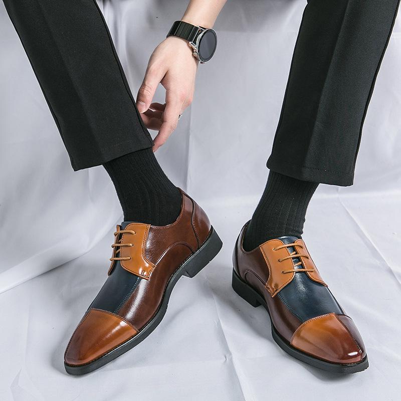 New Summer Men's Spliced Formal Wear Men's Shoes Fashionable Contrasting Color Business Leather Shoes Extra-large Size 48 Wedding Shoes