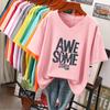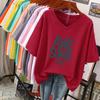 Short-sleeved T-shirt, Loose-fitting, Slimming Printed V-neck Top for Women
