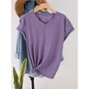 Fashionable Simple Versatile Pure-colored V-neck Short-sleeved Women's T-shirts