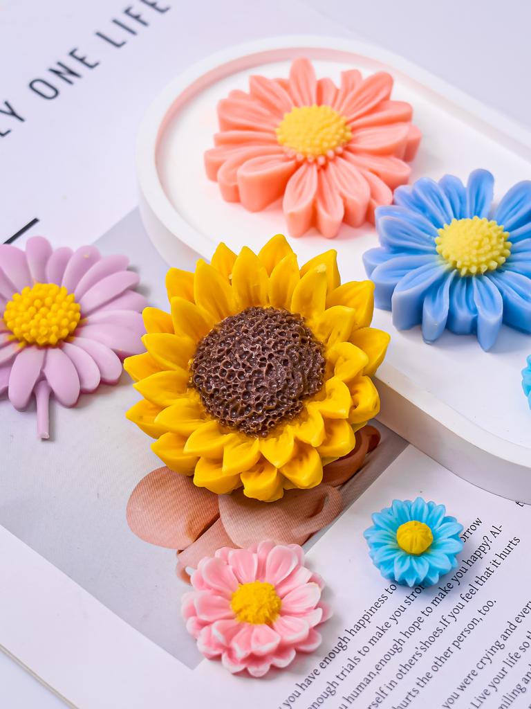 DIY 3D Daisy Flower Candle Silicone Mold Sunflower Handmade Soap Gypsum Ornament Molds Resin Clay Craft Casting Home Decor Gift