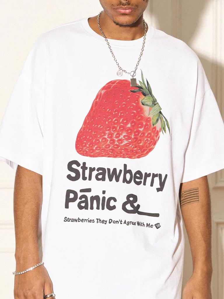 Vintage Strawberry Printed T Shirt High Quality Crew Neck Cotton Short Sleeve T-shirt Summer Men Women Tee Street Sports Tops