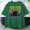 Pew Madafakas Black Cat Print Male Cotton Tee Clothing Personality Vintage T-Shirts Casual Trend Tops Mens Short Sleeve