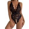 European & American Sexy Lace Halter Backless Bodysuit with Open Crotch