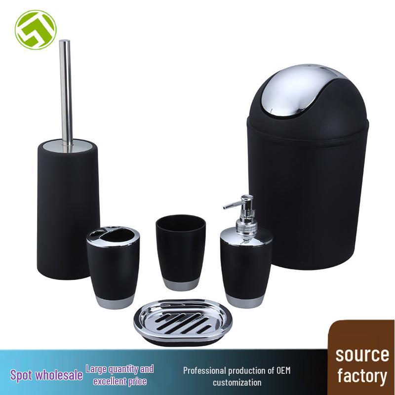 B&B Wedding Bathroom Set: Toilet Brush, Liquid Bottle, Trash Can - 4-Piece Hotel Kit