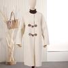 New Double-sided Cashmere Coat with Croissant Buckle Round Neck Medium and Long Woolen Coat Wool Coat Autumn and Winter
