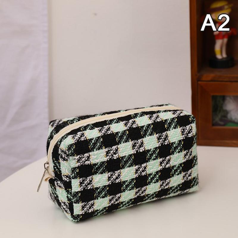 Black Canvas Plaid Travel Cosmetic Lipstick Storage Bag Cute Girls Makeup Handbags Organizer Stationery Pencil Cases Pouch Bag