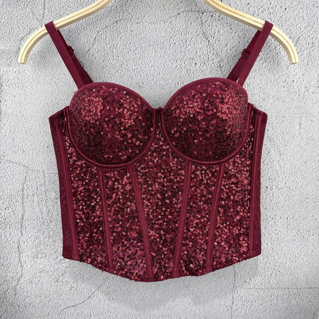 Pure Desire Style Fishbone Sequin Strapless Top Short Sexy Fitted Underwire Women's Waist-cinching Spring/summer Camis & Tank Tops