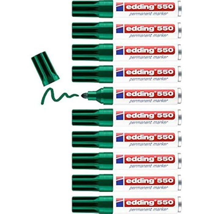 Marqueur Permanent - EDDING - 550 - 10 Stylos - Vert - Pointe Ronde 3-4 Mm - Résistant À L'eau