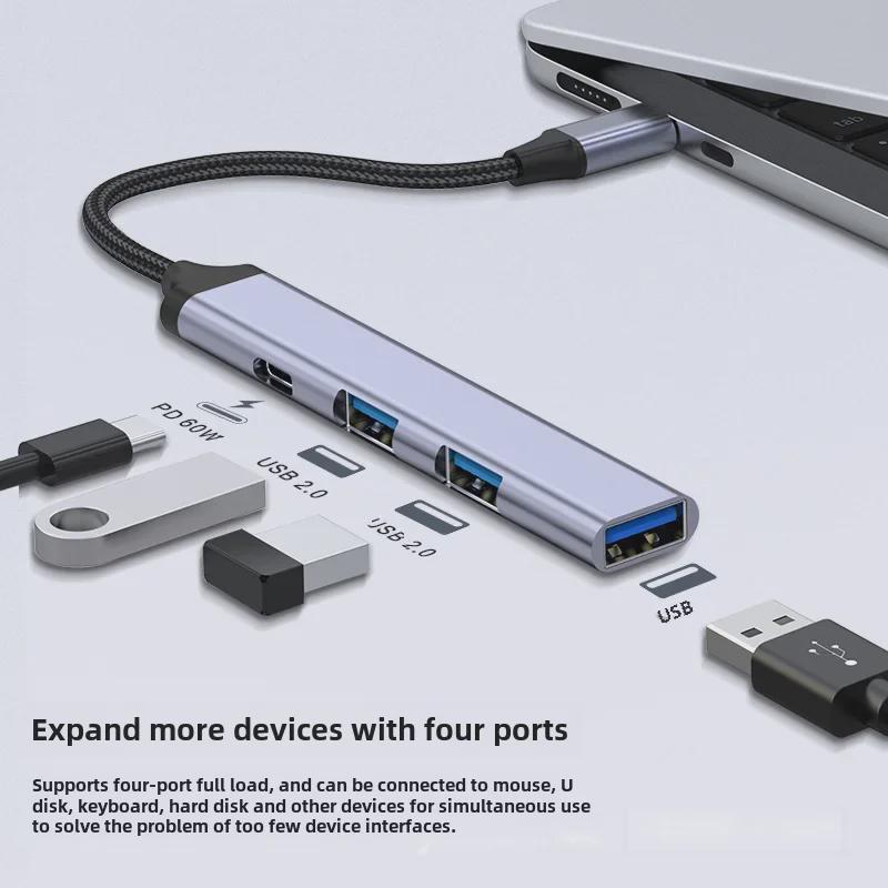 USB Type-C Hub: 4-Port Expansion Dock for Huawei Tablets, Phones, and Laptops