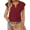 Summer Jacquard Checkered V-neck Top with Ruffle Sleeves Loose Short Sleeved Women's T-shirts