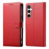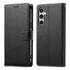 For Samsung Galaxy S25 FE Case Magnetic Snap Litchi Texture Leather Wallet Phone Cover with Wrist Strap