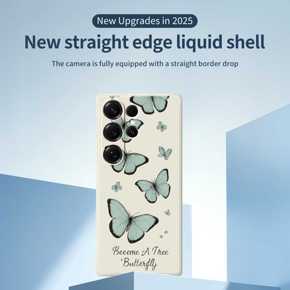 For Samsung Galaxy S25 Ultra Case Green Butterfly Pattern Printing Straight Edge TPU Phone Back Cover